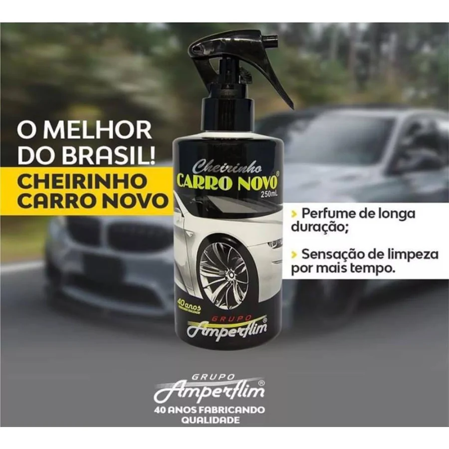 O Aromatizante Amperflim Cheirinho Carro é um spray automotivo com fragrância exclusiva de "carro novo", que garante um frescor prolongado para seu veículo. Ideal para eliminar maus odores, oferece perfume de longa duração que transforma o ambiente interno do carro, proporcionando sensação de limpeza e bem-estar. Sua fórmula concentrada é de alta performance, proporcionando excelente rendimento a cada aplicação. Com 250ml, é perfeito para uso diário ou profissional em lava-jatos e estéticas automotivas, aliando custo-benefício e qualidade num único produto.